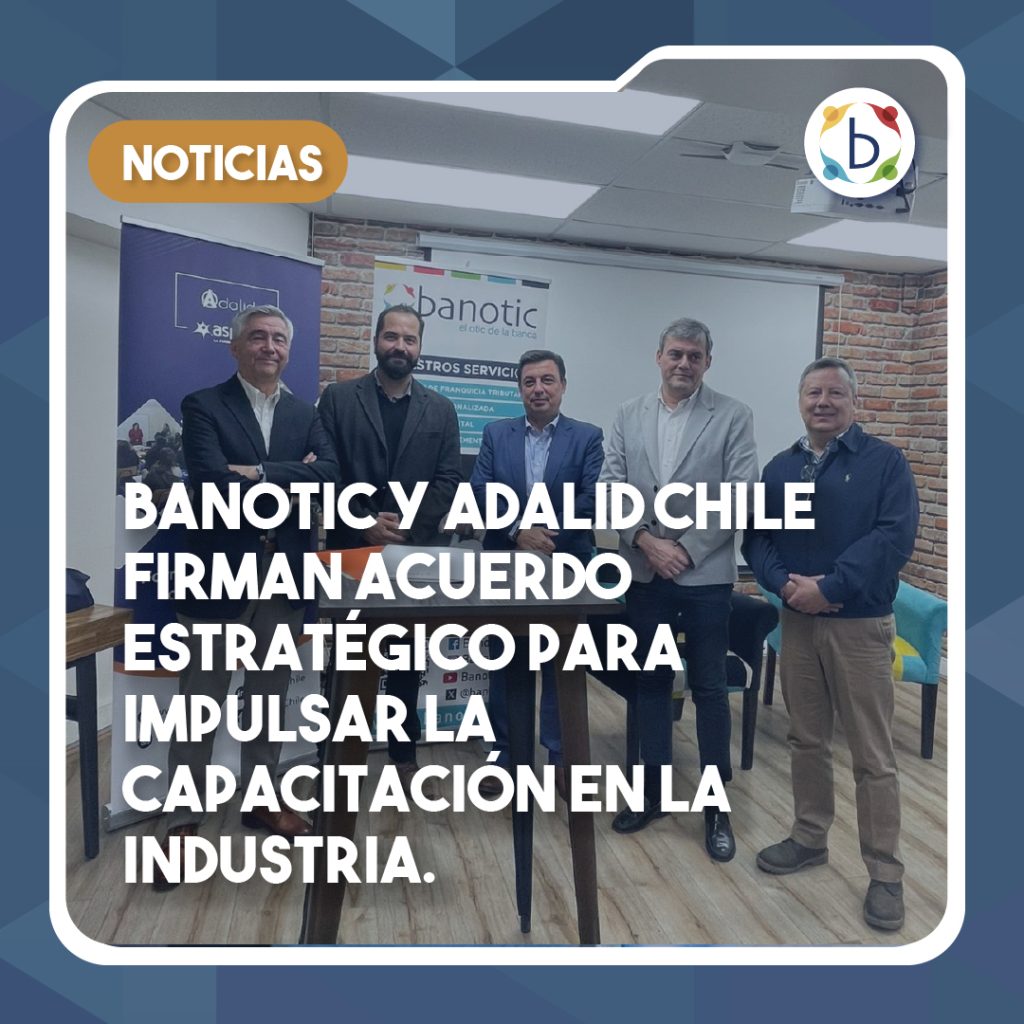 Hoy, miércoles 23 de octubre a las 11:00 horas, Banotic y Adalid Chile están formalizando una alianza estratégica en las oficinas de Adalid, con el objetivo de potenciar la capacitación laboral en la industria, específicamente a los adherentes de Banotic. La firma del convenio cuenta con la participación de altos ejecutivos de ambas organizaciones, subrayando […]