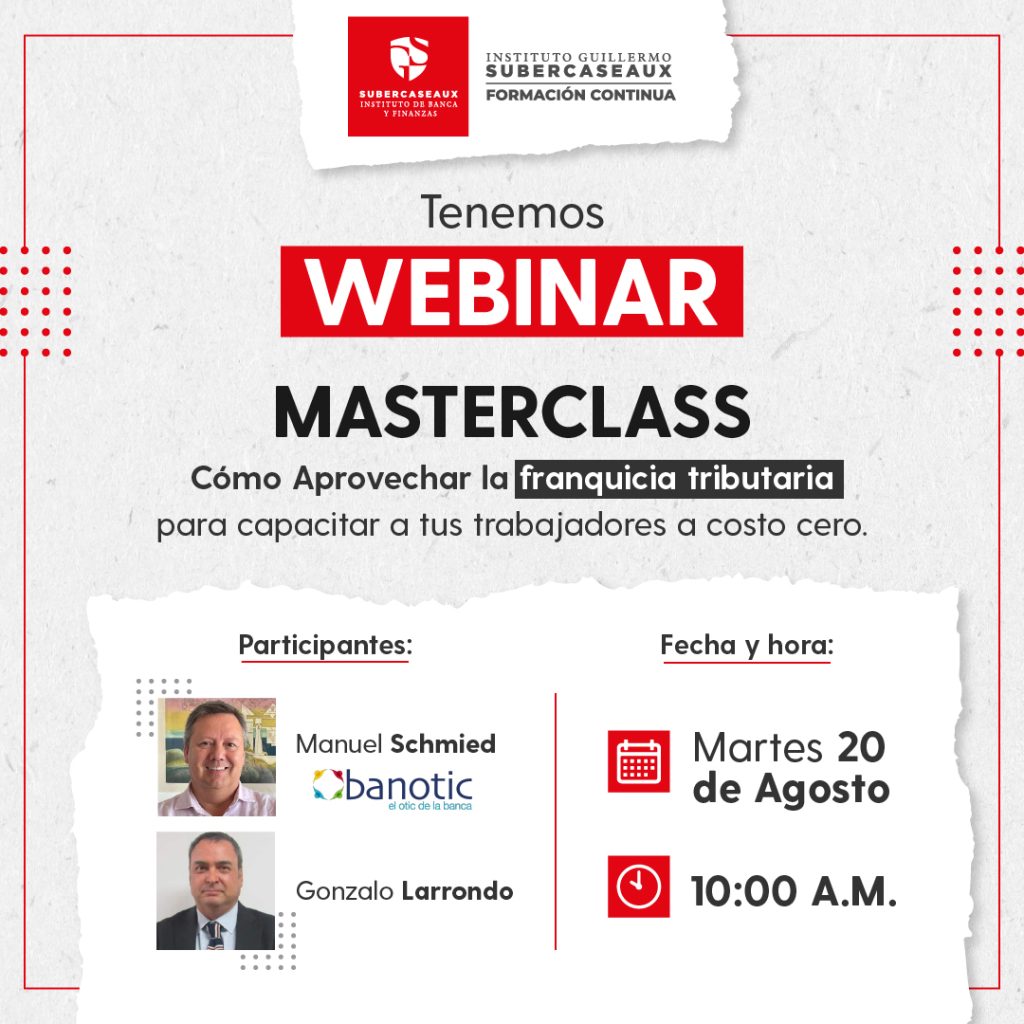 El pasado 20 de agosto, Banotic, el OTIC de la Banca, tuvo el honor de participar en una masterclass organizada por el Instituto Guillermo Subercaseaux. Este evento fue una valiosa oportunidad para abordar temas clave relacionados con la Franquicia Tributaria y su impacto en la formación laboral en el sector bancario.