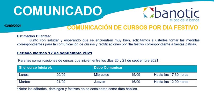 Comunicado Otic // Comunicación de Cursos Fechas Patrias